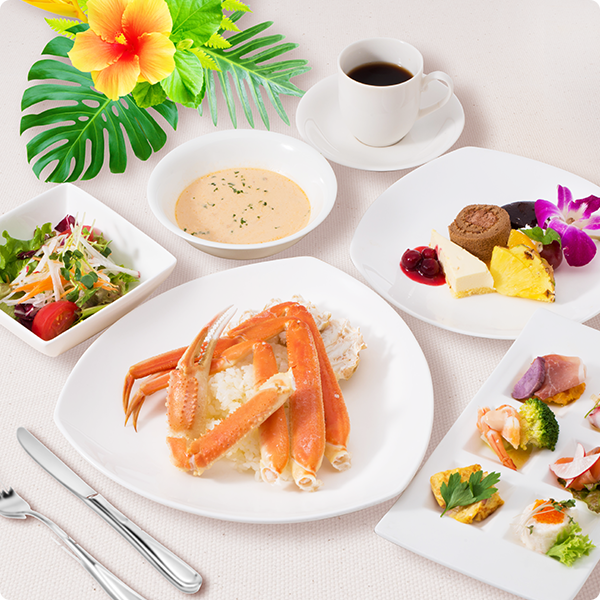 どちらのコースにも+500円でカニピラフのカニ増量できます。