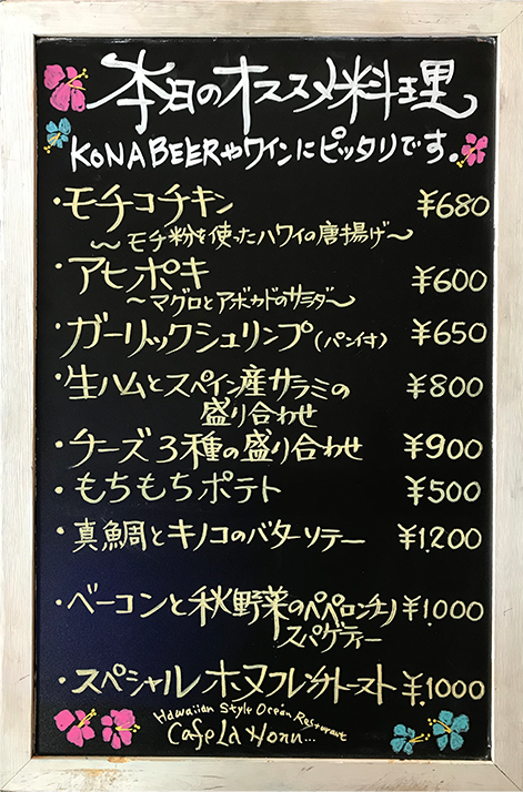 ご来店の際は「黒板メニュー」を是非チェックしてください。